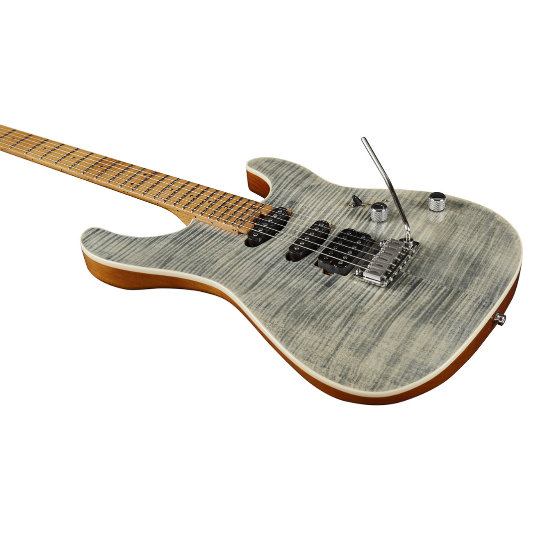 La lutherie des guitares Musa est de très haute qualité dans le but d’inspirer les guitaristes, et leur permettre d’exprimer leur meilleur d’eux-mêmes avec confort et performance. Le corps est composé d’aulne massif surmonté d’une table en érable canadien flammé, du plus bel effet. Le manche en érable torréfié, vissé 5 points, robuste et confortable, est surplombé d’une touche en palissandre de 24 cases apportant confort et chaleur pour vos solos les plus aigus. Le tremolo Eko Steel HRC57 intègre des pontets réglables indépendamment pour ajuster au mieux l’action et l’harmonique de chaque corde. Les mécaniques à blocage en configuration 4+2 assurent la stabilité de l’accordage et de vos notes. Enfin, la finition rouge brillant est présente sur la table, ainsi que sur le devant de la tête, afin de magnifier avec élégance l’érable flammé.