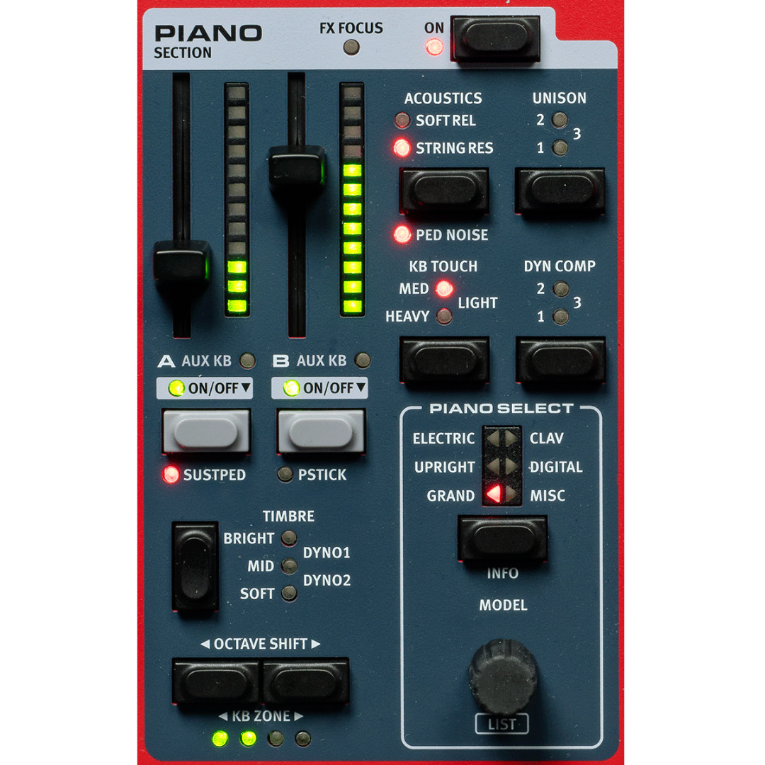 Le Nord Stage 4 est livré avec une nouvelle collection améliorée de pianos à queue, de pianos droits et de pianos électriques issus de la bibliothèque exclusive Nord Piano, combinée à de nouvelles fonctionnalités telles que la compression dynamique et l’unisson.