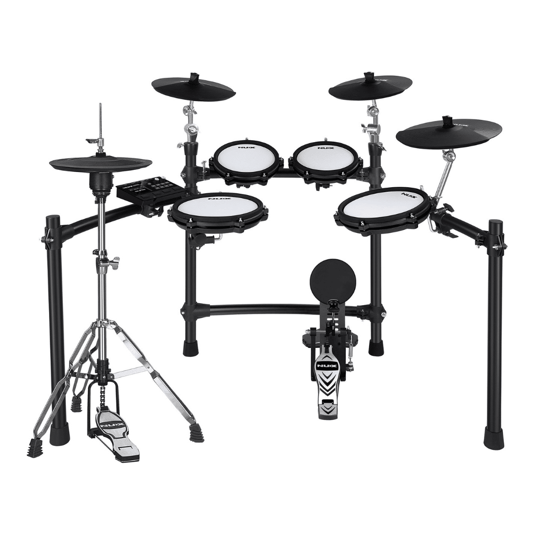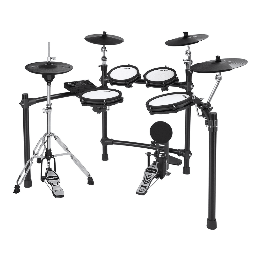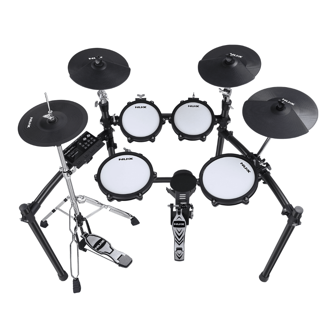 Les pads de grand diamètre, notamment la caisse claire, la cymbale ride et le tom basse, améliorent à la fois la surface de frappe et la lisibilité scénique. Cette conception optimise la cinématique du geste, réduit les frappes parasites et assure une réponse homogène sur l’ensemble des zones de jeu.