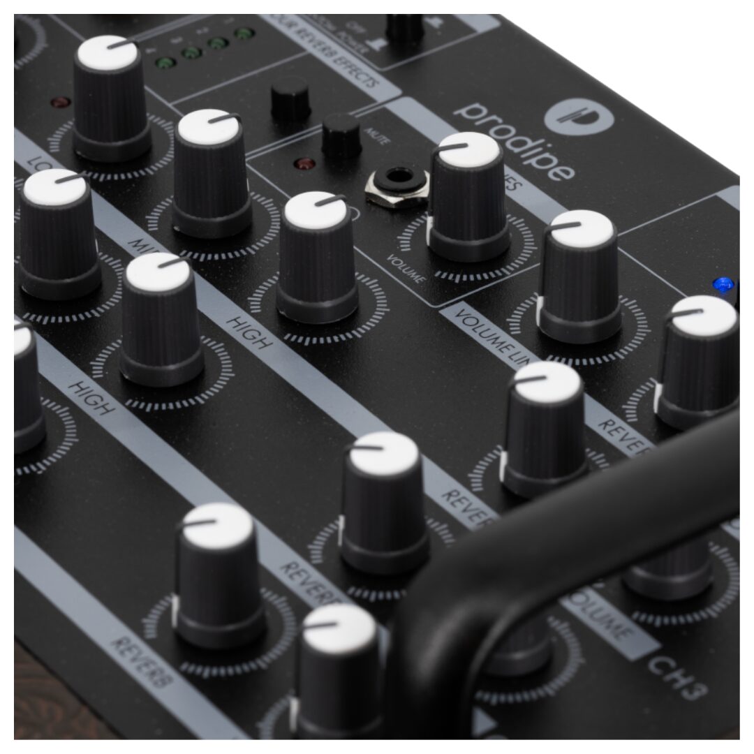 • Entrées polyvalentes : connectez micros, instruments et périphériques grâce aux entrées Combo Jack/XLR, avec contrôle de gain, égalisation 3 bandes et gestion du volume et de la reverb.